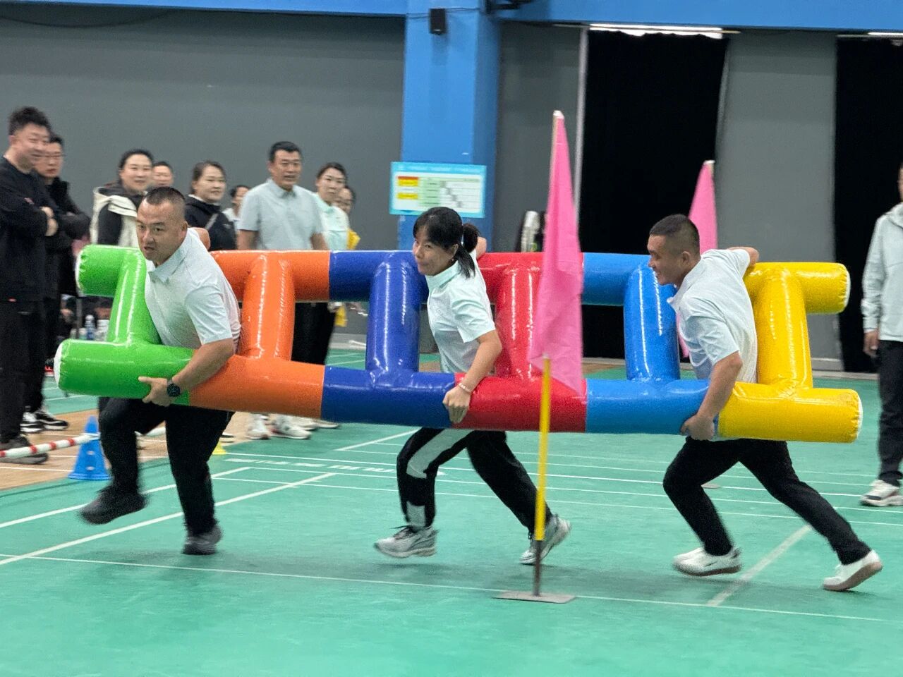現(xiàn)場氣氛熱烈,加油聲、吶喊聲與歡笑聲此起彼伏,整個(gè)運(yùn)動(dòng)場沉浸在一片熱烈而融洽的歡樂氛圍中……